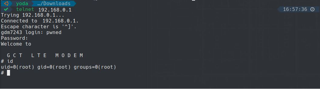 3. We can now login to the telnet port using our pwned account which has root privileges.