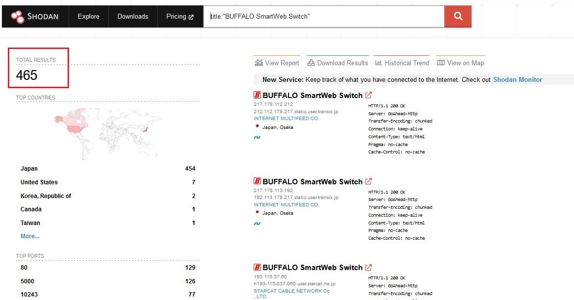 As of 21 Aug 2022, there were 465 Buffalo BS-GS2008, BS-GS2016, BS-GS2024, BS-GS2048, BS-GS2008P, BS-GS2016P and BS-GS2024P devices exposed to the internet and were affected by the vulnerabilities discovered.