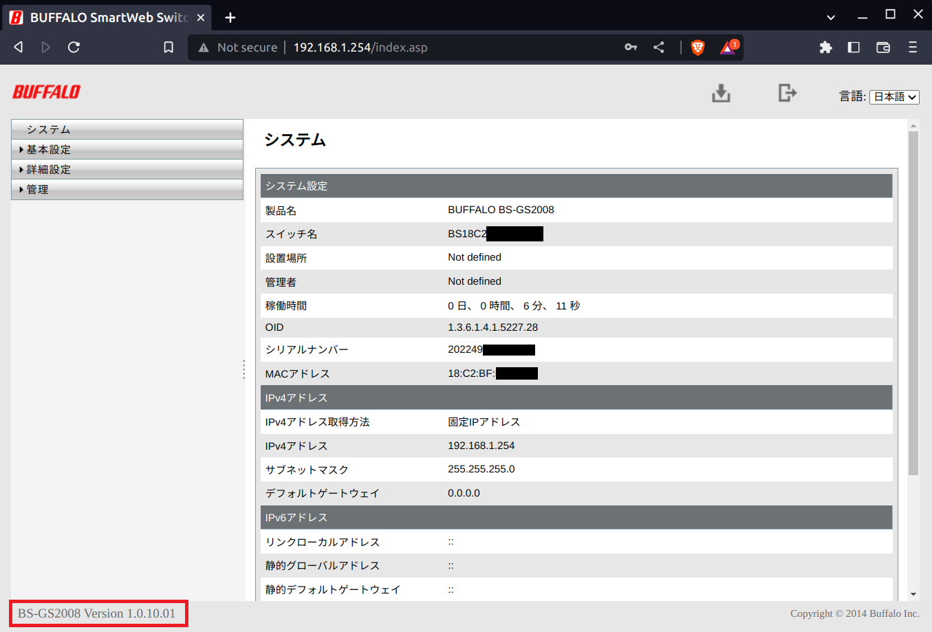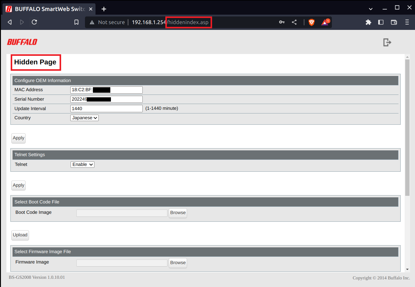 All Buffalo BS-GS2008, BS-GS2016, BS-GS2024, BS-GS2048, BS-GS2008P, BS-GS2016P and BS-GS2024P devices from version 1.0.10.01 and under.