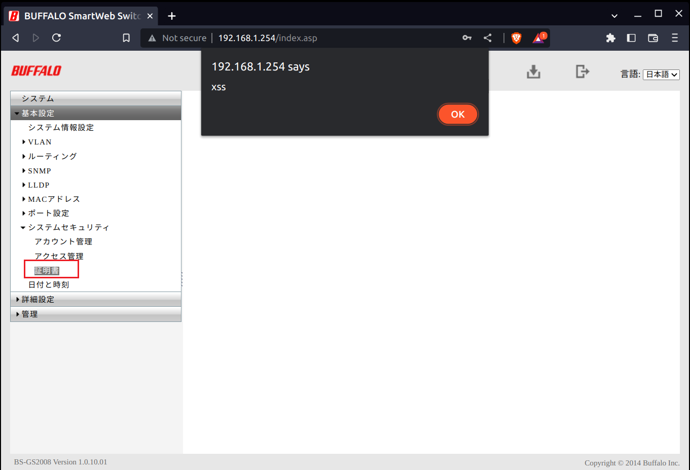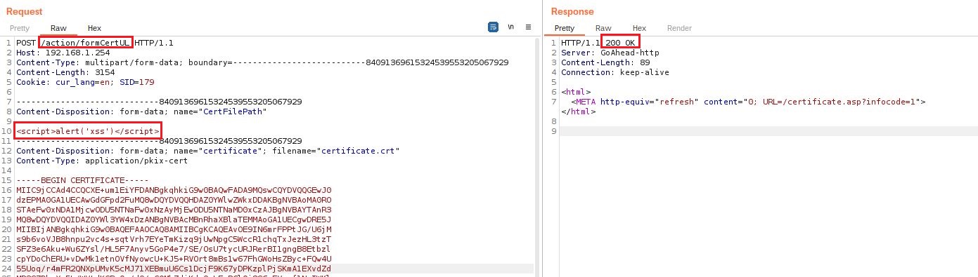When a legitimate user accesses the certificate.asp page of the web management interface, the JavaScript payload will be triggered.