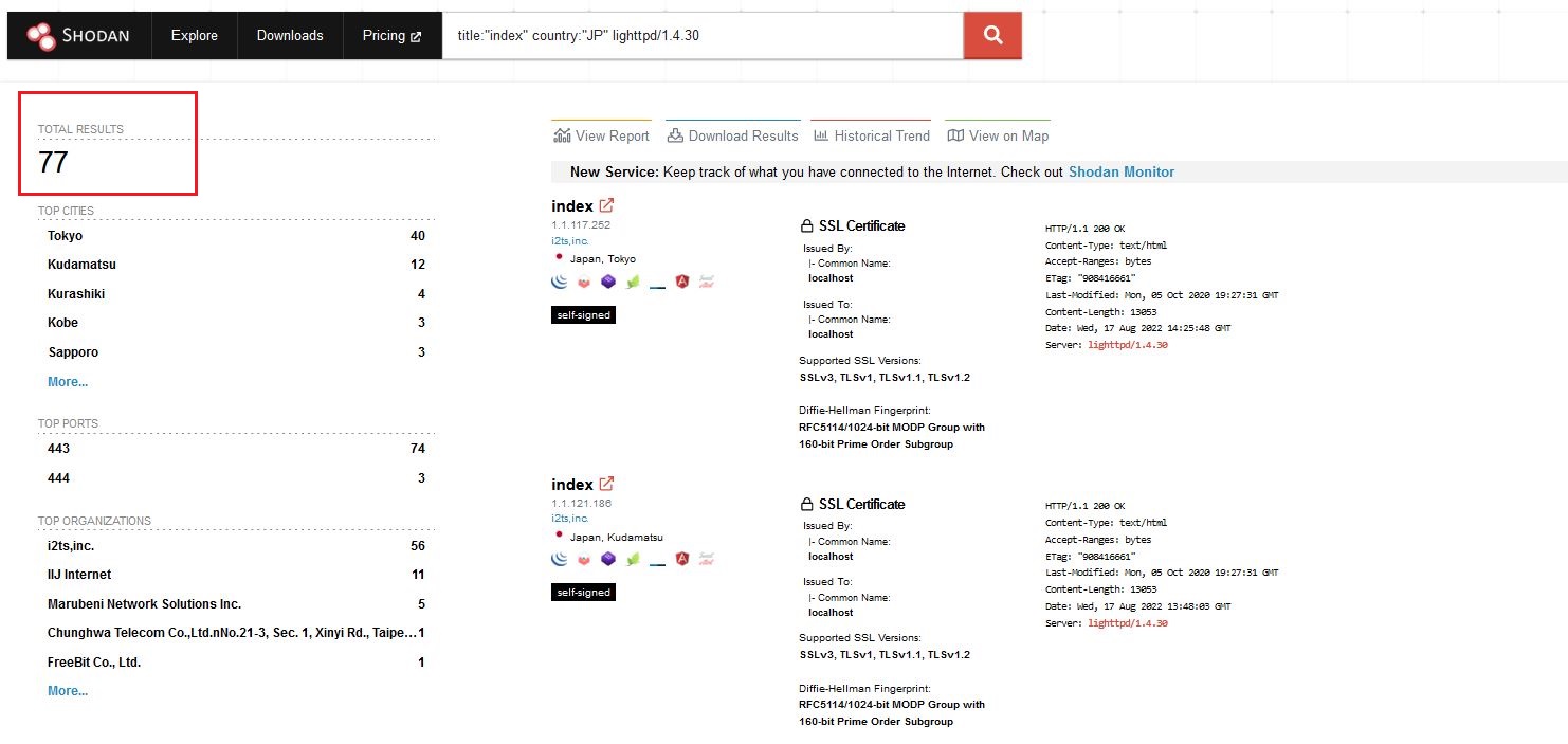 As of 8 Aug 2022, there were 77 Hytec Inter HWL-2511-SS LTE router devices exposed to the internet and were affected by the vulnerabilities discovered.
