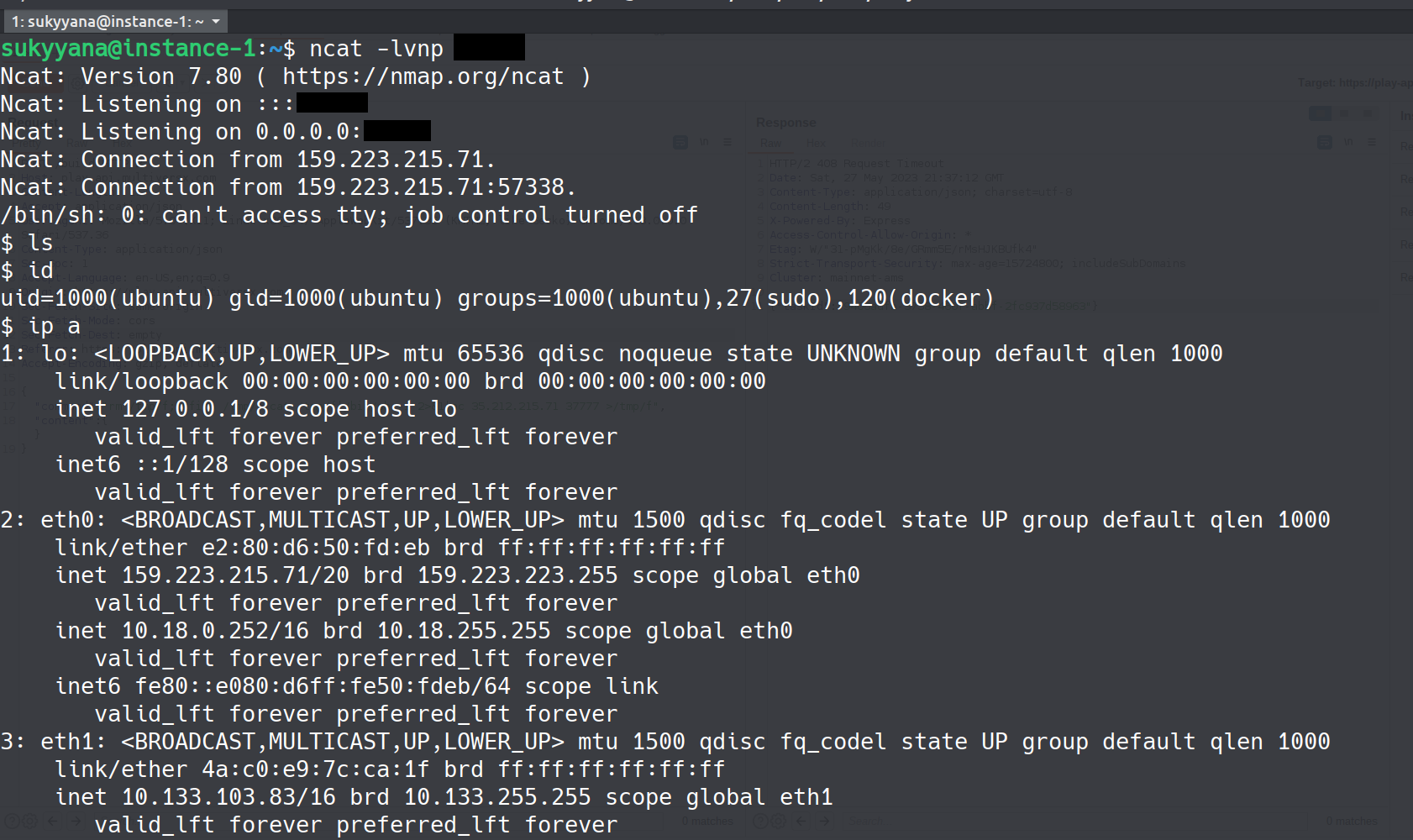 We could also exploit this vulnerability to create a reverse shell and potentially pivote into other node
